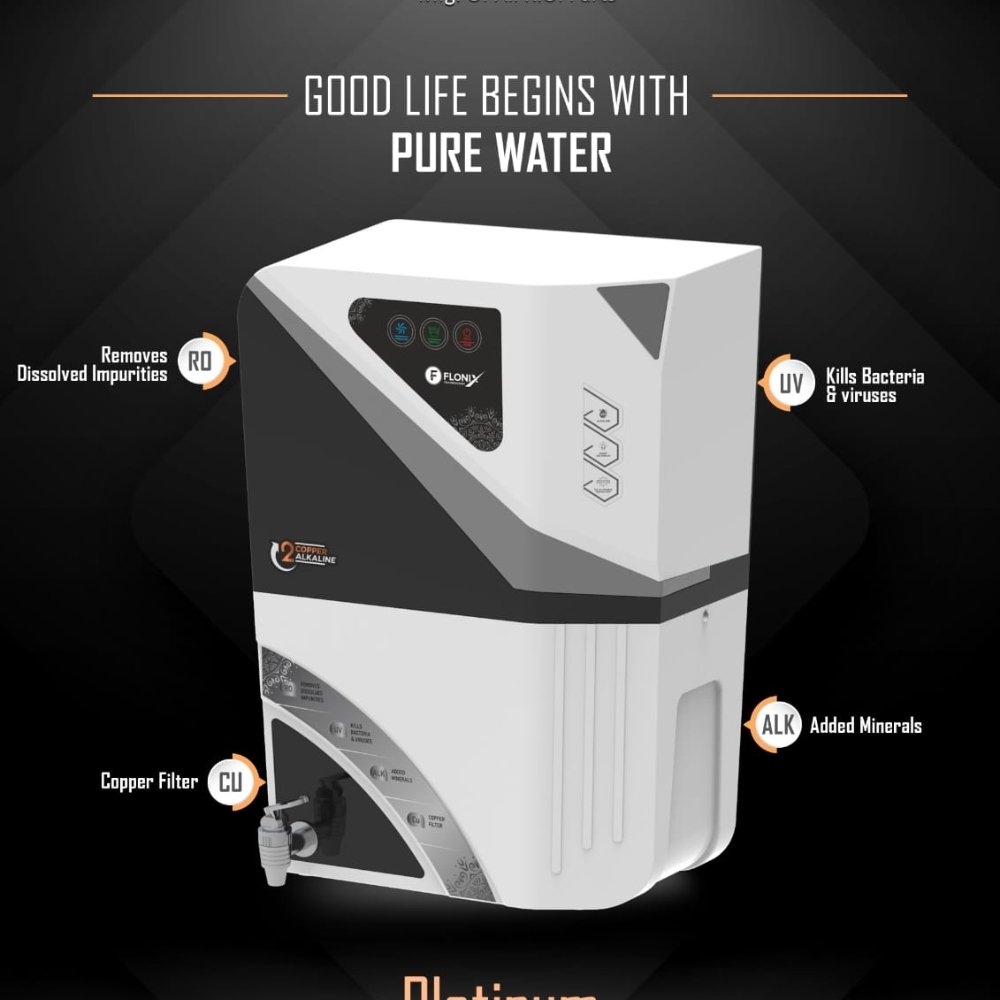Overview The Platinum Model 15 LPH RO System is built for those who seek the highest level of purity and health benefits in their drinking water. Featuring a 7-stage purification system, it removes impurities, dissolved salts, and microbes while incorporating alkaline, copper, and UV technologies. This ensures water that is not only safe but also enriched with essential minerals, balanced pH, and microbial protection—perfect for households and small offices.